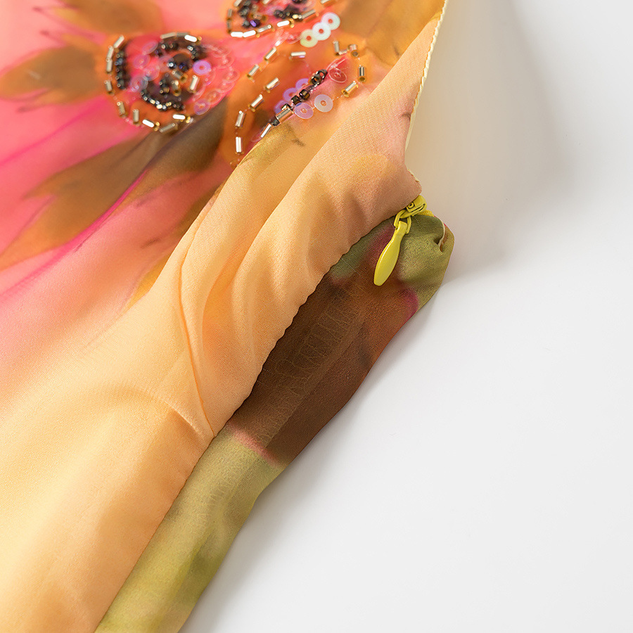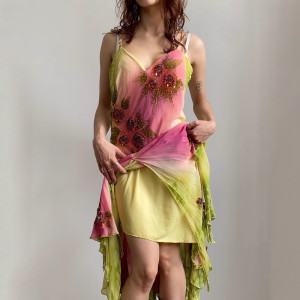 - Product Name: Ruffled Hem Embroidered Floral Spaghetti Strap Midi Dress