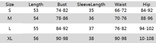 1.There maybe 1-2 cm deviation in different sizes, locations and stretch of fabrics. Size chart is for reference only, there may be a little difference with what you get.