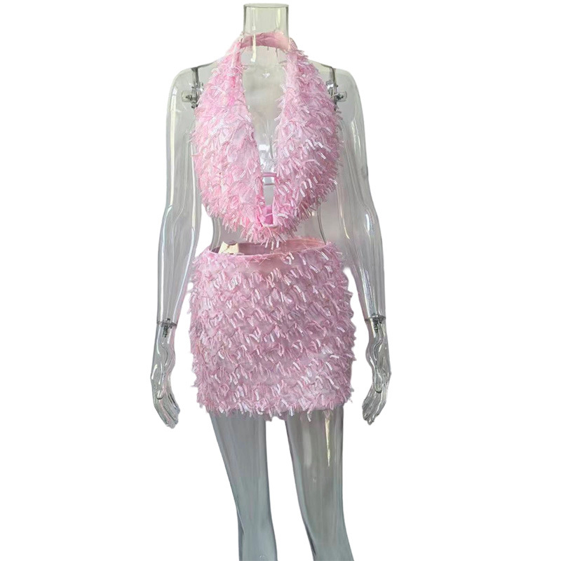 - Product Name: Sexy Halter Neck V-Neck Slimming Dress Set