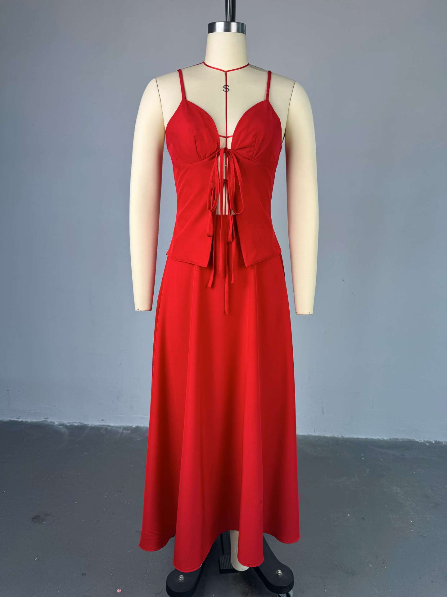 - Product Name: Sexy Lace-Up Straps Top & High-Waist Skirt Two Piece Set